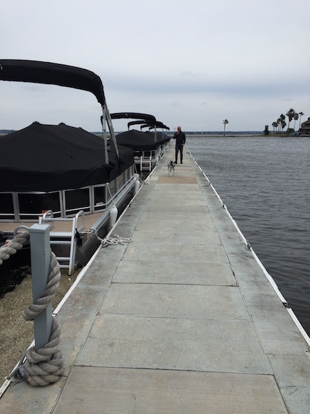 Llegamos un poco antes de las 2 de la tarde y buscamos un lugar donde rentar una lancha. Llegamos a Einstein’s Ship Store donde nos hubieran rentado una lancha Pontoon (es una plataforma con asientos y toldo sobre dos flotadores de aluminio) para pasear pero la misma encargada nos sugirió no rentarla porque nos íbamos a mojar y nos explicó que con el frío que hace no lo íbamos a disfrutar nada. Así que decidimos no rentarla y seguimos rodeando el lago un poco. En algún punto encontramos un área de pasto junto a un salón cerrado de «La Torreta, lake resort and spa» (donde se veían restos de una fiesta de fin de año) y ahí decidimos hacer base para nadar un rato.